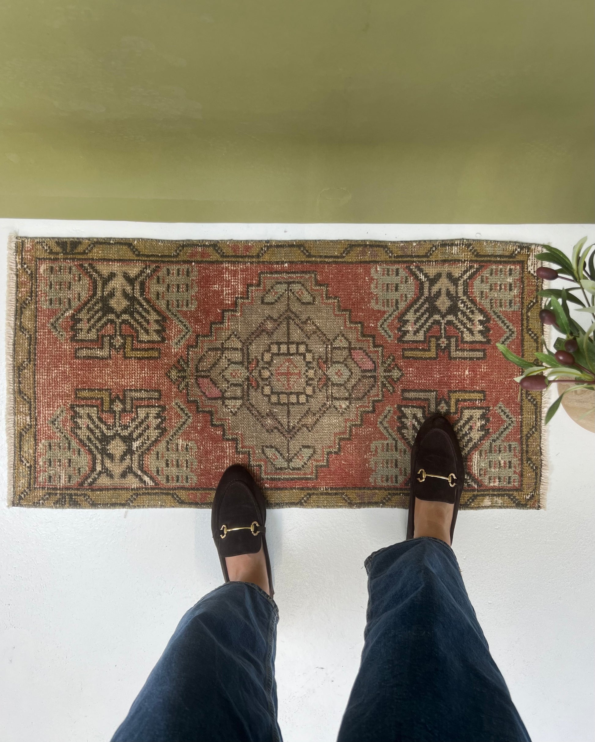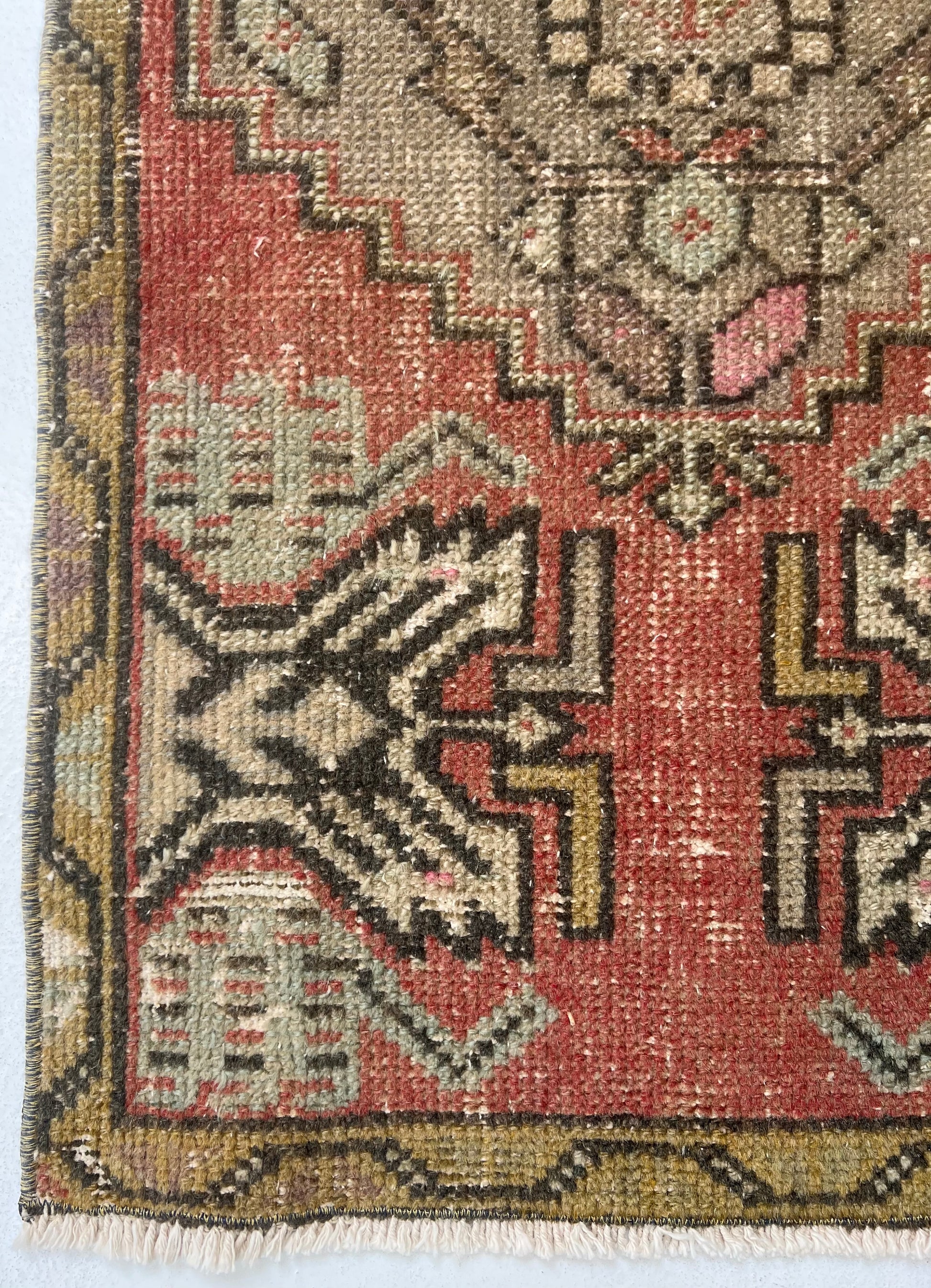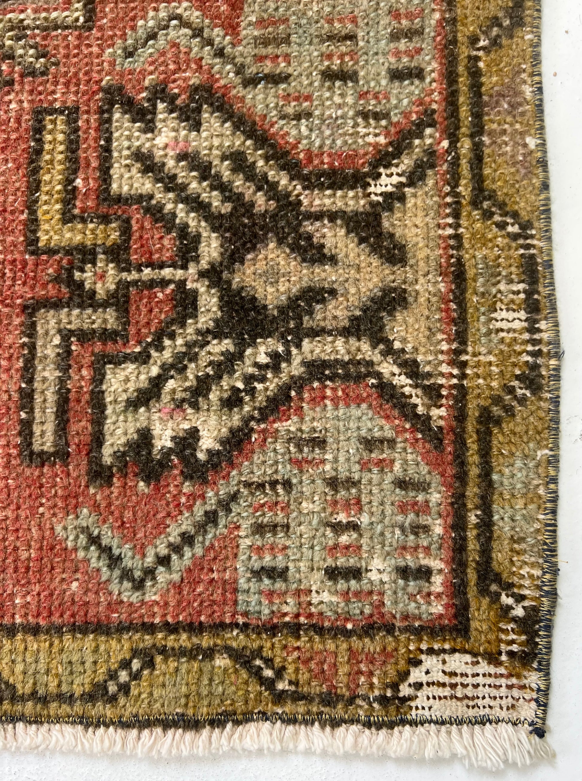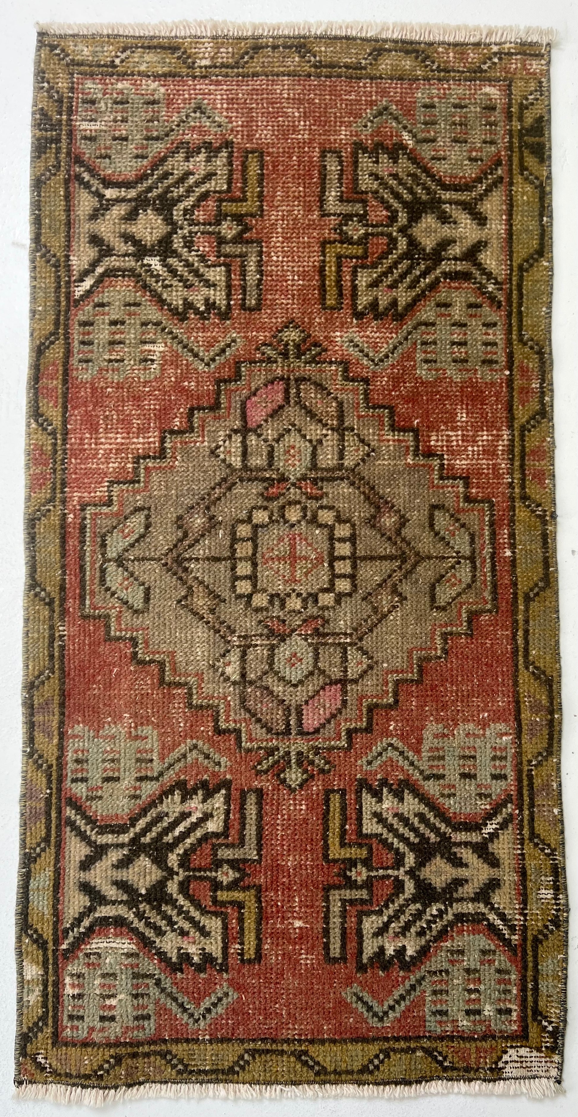 This is a one-of-a-kind, handmade vintage mini rug – only one available.